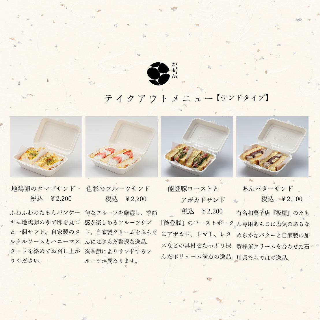 There are four types of takeout sandwiches available.Enjoy fluffy pancakes at home.